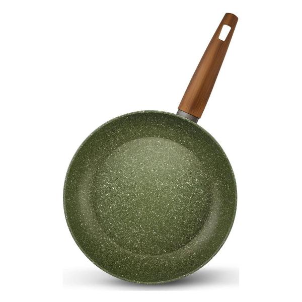 Сковорода TVS Natura Induction 24 см 328071 выполнена из легкого, прочного и долговечного алюминия. Бакелитовая ручка не проскальзывает в процессе приготовления еды, что предохраняет от ожога. Отверстие в верхней части дает возможность компактно хранить изделие на кухонном рейлинге. Внутренняя часть с антипригарной поверхностью легко очищается от загрязнений. Посуду круглой формы можно мыть обычными средствами, без применения абразивов и жестких щеток, которые царапают покрытие. Модель подходит для всех источников нагрева. Габариты 24х24 см, вес — 0,9 кг.