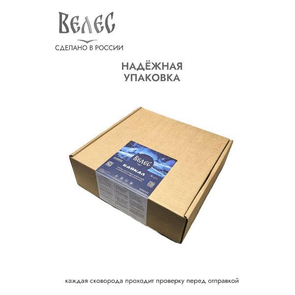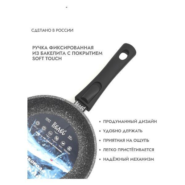 Литой корпус толщиной 5 мм и дно 6 мм исключает деформацию посуды. Высочайшее качество, в соответствии требованиям ГОСТ Р 56674-2018. Антипригарное покрытие долговечно и абсолютно безопасно - без вредных примесей и без PFOA. Линия выполнена в стиле ЭКОдизайн, эксклюзивное цветовое решение специально разработано для торговой марки «ВЕЛЕС».