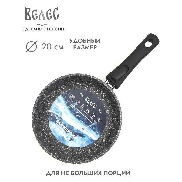 Сковорода 20 см ТМ «ВЕЛЕС» серии "БАЙКАЛ" из литого алюминия с толстым дном и высокопрочным 7-слойным антипригарным ЭКО покрытием “Granit Perfection” со съёмной ручкой - станет незаменимым инструментом и надежным помощником на вашей кухне.