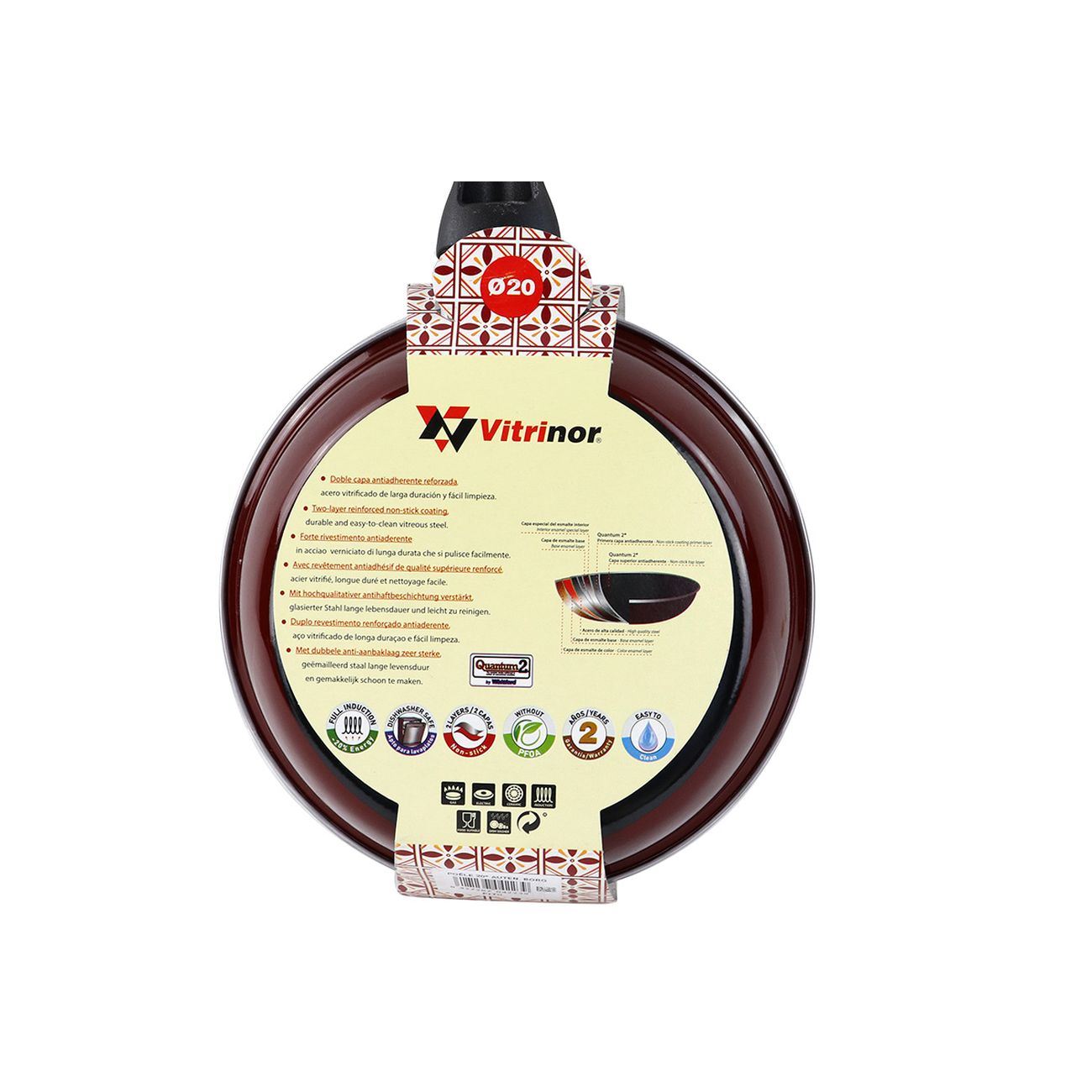 Сковорода Vitrinor Authentique Burgundy 20 2104223 оснащена двухслойным антипригарным покрытием, поэтому подходит для приготовления блюд без масла. Термоизолированная ручка с петлей для подвешивания не нагревается даже при длительном воздействии высоких температур. Корпус посуды выполнен из качественной нержавеющей стали.