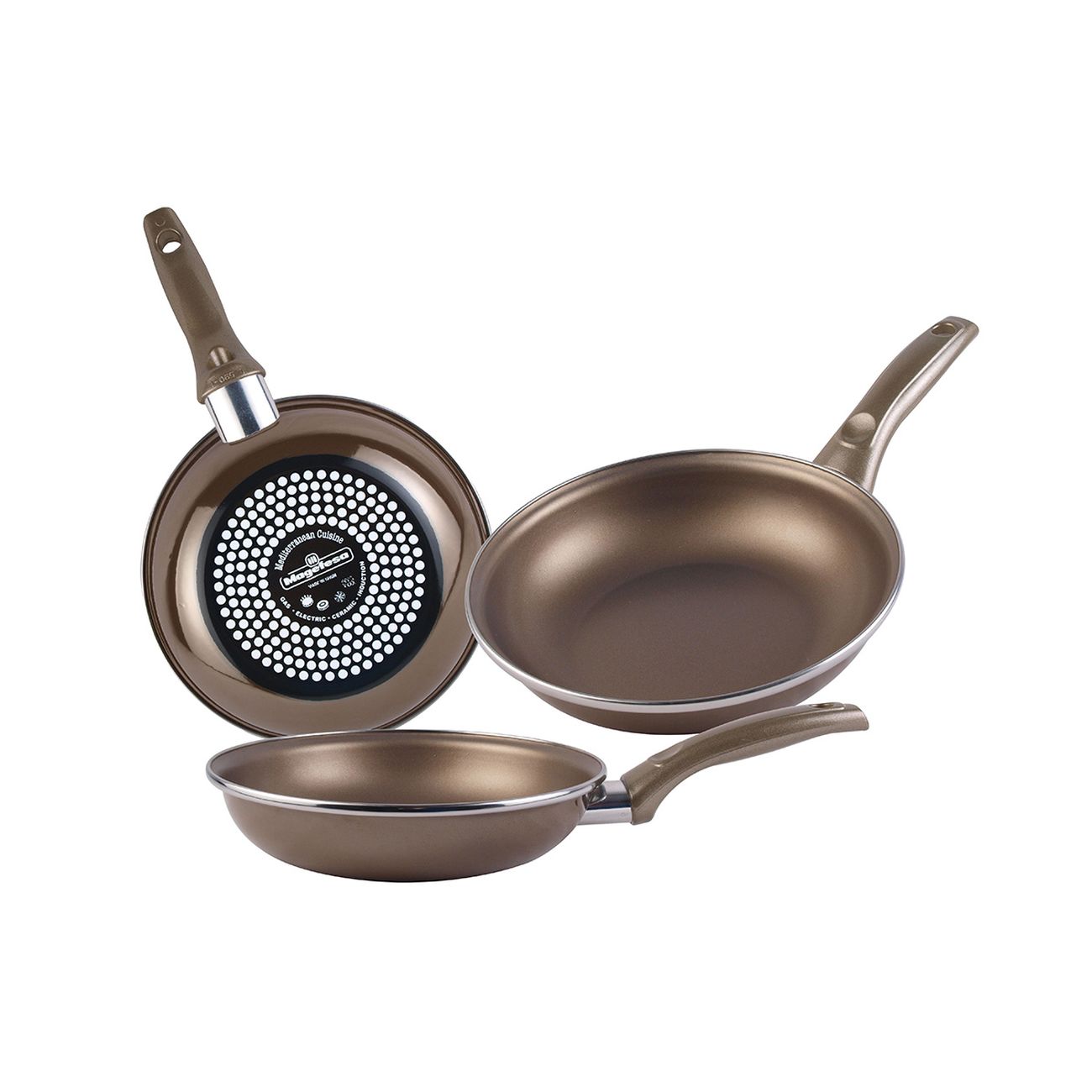 Корпус изготовлен из стали с ферромагнитными характеристиками. Поверхность быстро нагревается и обеспечивает повышенную энергоэффективность. Допустимо использование посуды на плитах любого типа. Сковороду можно мыть в посудомоечной машине.