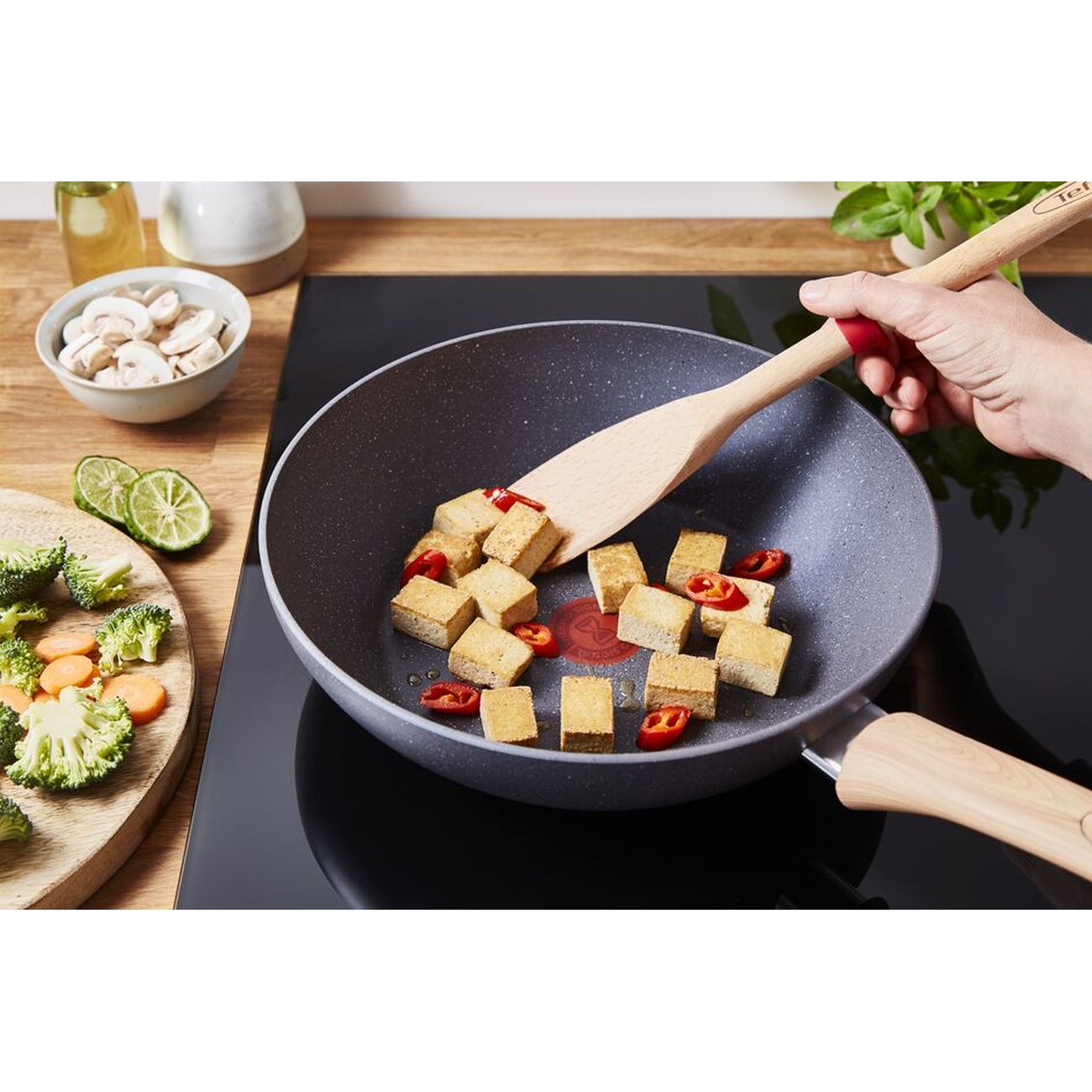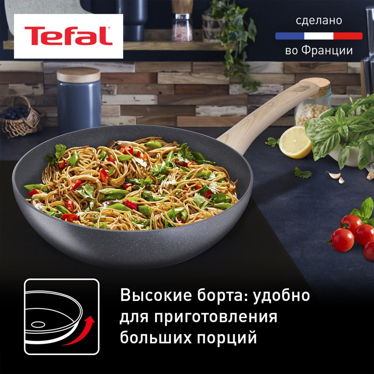 Муж купил сковородку. Ему давно хотелось попробовать сковородку вок, которую видел в ресторане быстрого питания глобус, когда нам готовили лапшу по китайски. В магазине продавец посоветовал эту сковороду, сказал, что это новая линейка тефаль. Как оказалось, сковорода отличная, готовить удобно, высокие стенки и узкое дно позволяют перемешивать содержимое без лопатки, всего лишь наклоном сковороды, с приминением минимального количества масла. Легко мыть руками, производитель даже допускает мыть в посудомоечной машине. Еще приятно удивило, что изготовлена сковорода во Франции.