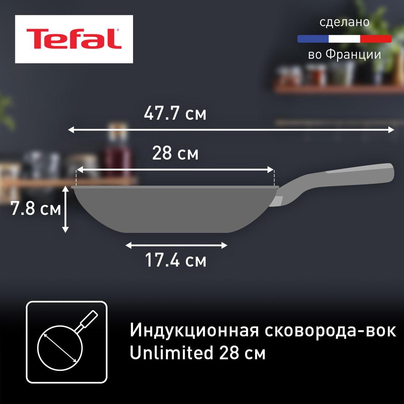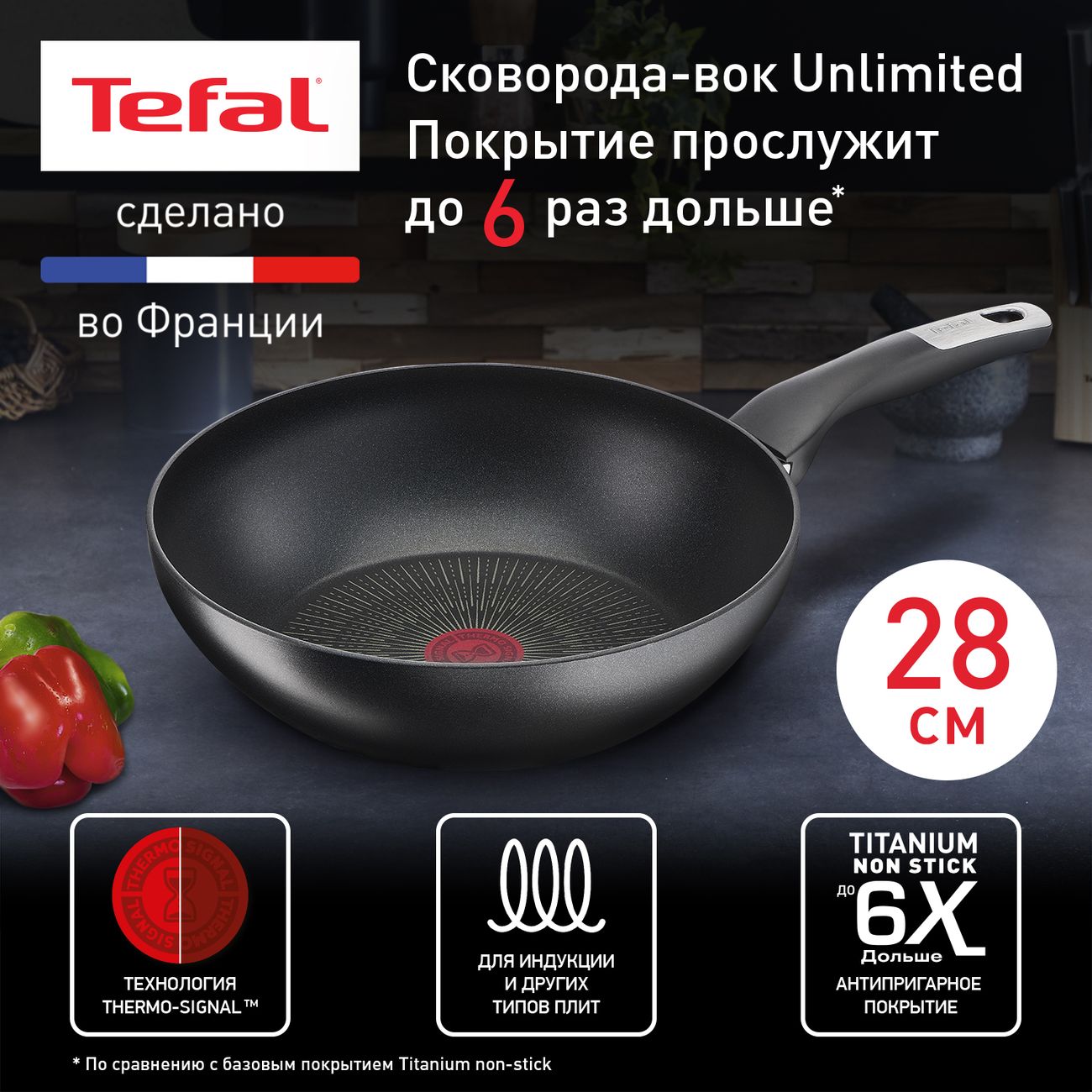 Вы можете купить Сковорода вок Tefal Unlimited 28см (G2551972) в магазинах М.Видео по доступной цене. Сковорода вок Tefal Unlimited 28см (G2551972): подробное описание, фото и отзывы реальных покупателей, характеристики, возможность скачать инструкции и подобрать аксессуары.