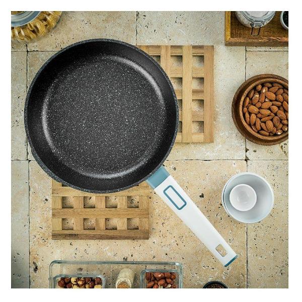 Сковорода Walmer Rochester W34202026 стандартного типа изготовлена из алюминия, изнутри обработана антипригарным покрытием. Для плотности корпуса встроен антидеформационный диск. При диаметре 26 см и высоте 9,2 см рабочая поверхность составляет 19 см. Ручка не проводит тепло, белого цвета. Эксплуатация посуды возможна на газовой, индукционной, чугунной, стеклокерамической, галогеновой конфорках. Очищение возможно производить в посудомоечной машине. Цвет — серый. Общая масса — 1 кг.