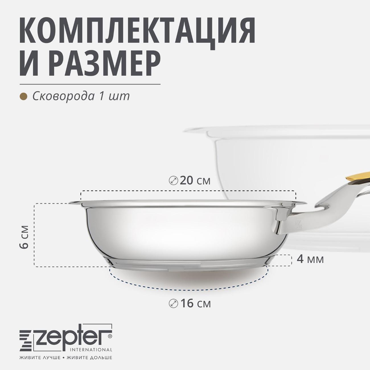 Вы можете купить Сковорода Zepter 20 см Z-FP2016-S/S в магазинах М.Видео по доступной цене. Сковорода Zepter 20 см Z-FP2016-S/S: подробное описание, фото и отзывы реальных покупателей, характеристики, возможность скачать инструкции и подобрать аксессуары.