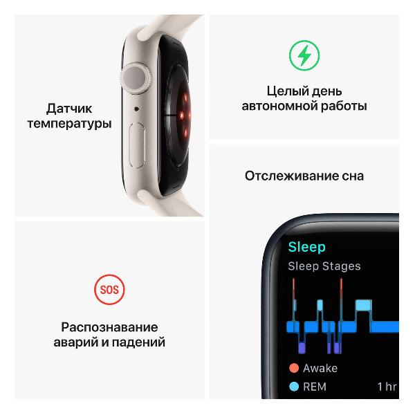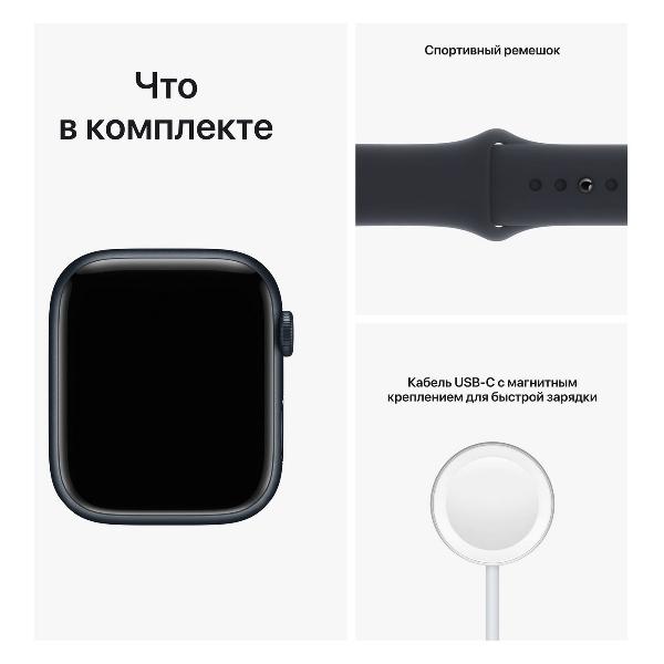 Смарт-часы Apple Watch Series 8 Midnight (MNP13) с циферблатом диаметром 45 мм выполнены из алюминия, выдерживают погружение под воду на глубину до 50 м и защищены от пыли по стандарту IP6X. Гаджет оснащен сенсорным дисплеем Retina LTPO OLED разрешением 396х484 пикселей. В основе — процессор Apple S8, объем встроенной памяти — 32 Гб.