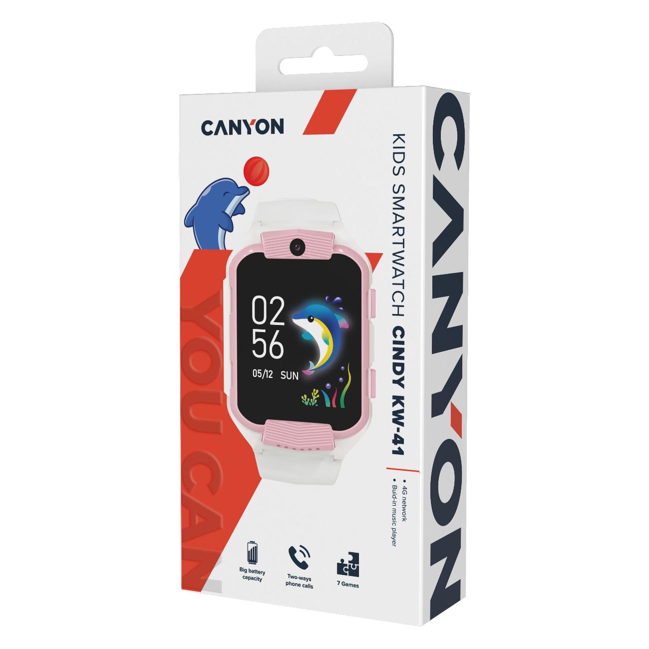 Смарт-часы Canyon KW41 Cindy оборудованы слотом для установки nano-SIM благодаря чему способен функционировать без подключения к смартфону. Устройство поддерживает беспроводные технологии Bluetooth и 4G LTE. Размер встроенной памяти составляет 512 МБ, размер оперативной памяти — 192 МБ. Электропитание устройства осуществляется посредством встроенного аккумулятора емкостью 680 мА*ч, полного заряда которого хватает на пять дней работы.