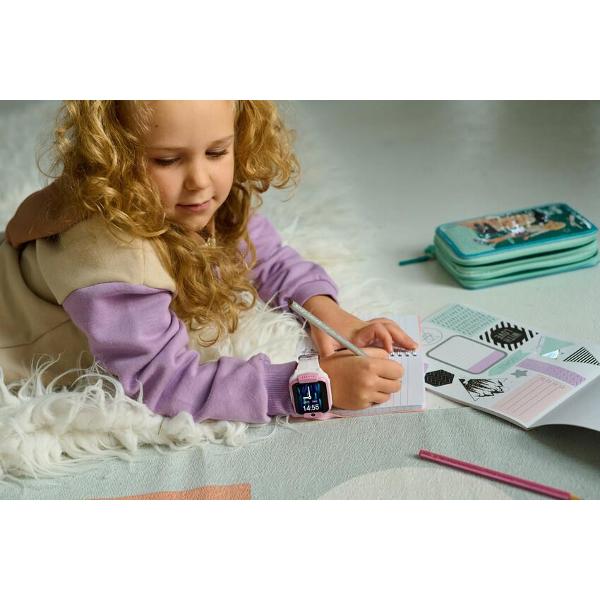 Конструкция включает в себя сенсорный экран диагональю 1,69", пластиковый водоустойчивый корпус и силиконовый ремешок для запястья обхватом 150-230 мм. Устройство оснащено встроенным микрофоном и динамиком для совершения звонков, кнопкой SOS для подачи сигнала при возникновении экстренной ситуации. В качестве развлекательных дополнений предусмотрено наличие встроенной камеры, музыкального плеера и семи развивающих игр.