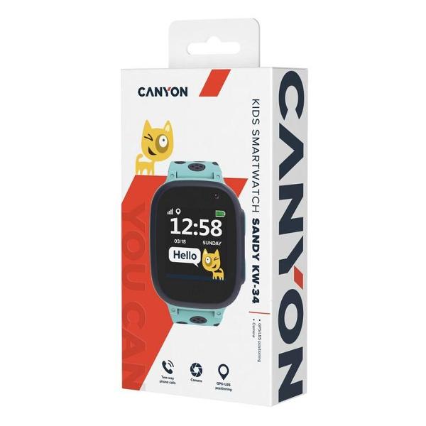 Смарт-часы Canyon Sandy KW34 (CNE-KW34BL) — устройство для детей в пластиковом корпусе голубого цвета с силиконовым ремешком, который можно регулировать под размер запястья (от 150 мм до 230 мм). Модель оснащена сенсорным TFT-дисплеем диагональю 1,44 дюйма разрешением 128х128 пикселей. Наличие подсветки обеспечивает хорошую видимость в темное время суток. Предусмотрена поддержка платформ Android 5.0 и выше, iOS 10 и выше. В часы встроена собственная SIM-карта, которая позволяет совершать звонки. Все пропущенные вызовы и входящие SMS отображаются в качестве уведомлений на устройстве.