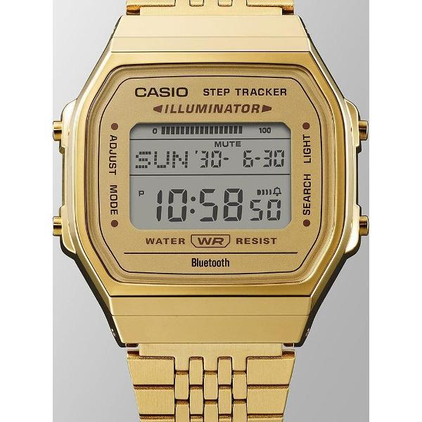Винтажная модель Casio с современной функциональностью. Измерение количества шагов: Диапазон отображения количества шагов: от 0 до 999 999 шагов Отображение прогресса цели по количеству шагов (диапазон установки цели по количеству шагов: от 1 000 до 50 000, с шагом 1 000 шагов). Напоминание о шагах (сообщит вам, когда количество шагов станет слишком низким, с помощью дисплея и звукового сигнала). График количества шагов (почасовое количество шагов за последние 7 часов на 6-уровневом графике). Беспроводная связь с использованием Bluetooth (Автоматическая регулировка времени, простая настройка часов, около 300 городов мирового времени, данные журнала жизни, время и место, поиск телефона). Секундомер с точностью измерения 1/100 секунды (после 60 минут)Единица измерения: 1/100 секунды (первые 60 минут), 1 секунда (после 60 минут). Режимы измерения: прошедшее время, время круга, промежуточное время Записанные данные: до 200 записей (год начала измерения, месяц, дата, час, минута, время круга/промежуточное время). Таймер обратного отсчета от 1 секунды до 60 минут. 5 ежедневных будильников, почасовой сигнал времени. Функция энергосбережения. Оповещение о низком уровне заряда батареи. Светодиодная подсветка: возможность выбора продолжительности подсветки (1,5 секунды или 3 секунды), послесвечение. Браслет из нержавеющей стали с регулируемой застежкой, обхват запястья от 140 до 205 мм. Вес часов 60 грамм.
