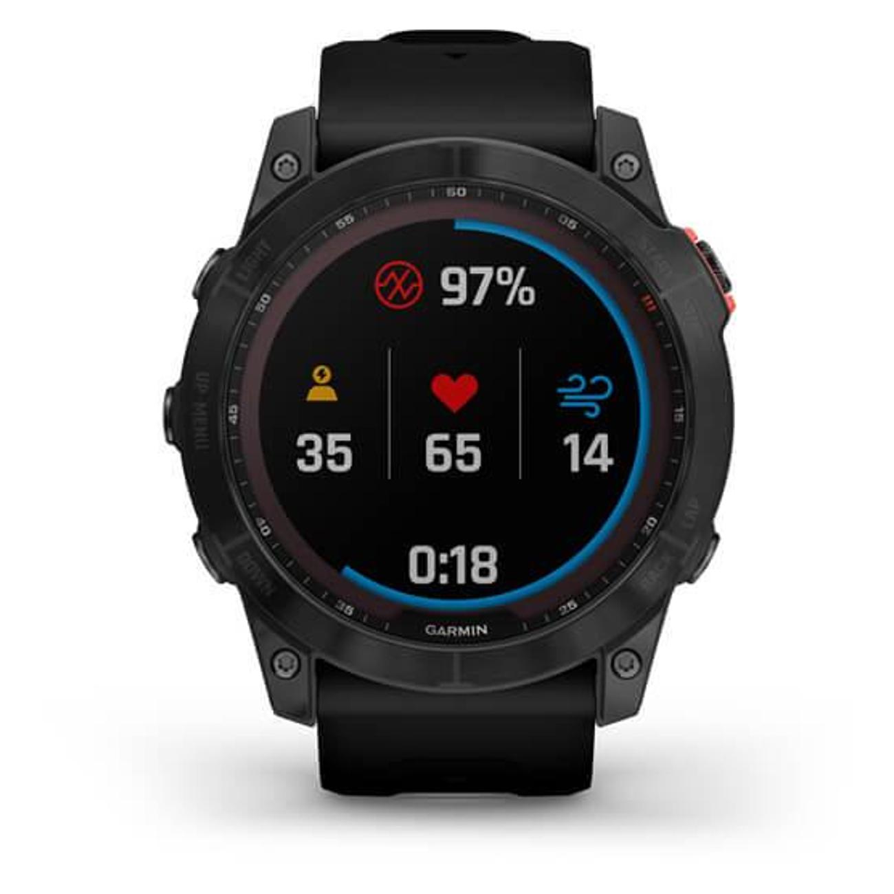 Смарт-часы Garmin 7X Solar Slate Gray совместимы с устройствами, работающими на операционных системах Android версии 5.0 и выше, iOS версии 8.0 и выше. Диагональ экрана составляет 1,4", разрешение — 280х280 пикс. Дисплей цветной, выполнен по технологии MIP. Встроена подсветка. Управление производится при помощи кнопок и сенсорного экрана для быстрого доступа к функциям. Данные передаются через модуль Bluetooth, NFC, Wi-Fi. Устройство предлагает широкий спектр функций для отслеживания показателей здоровья и для занятий разными видами спорта, включая бег, велоспорт, плавание, туризм, фитнес.