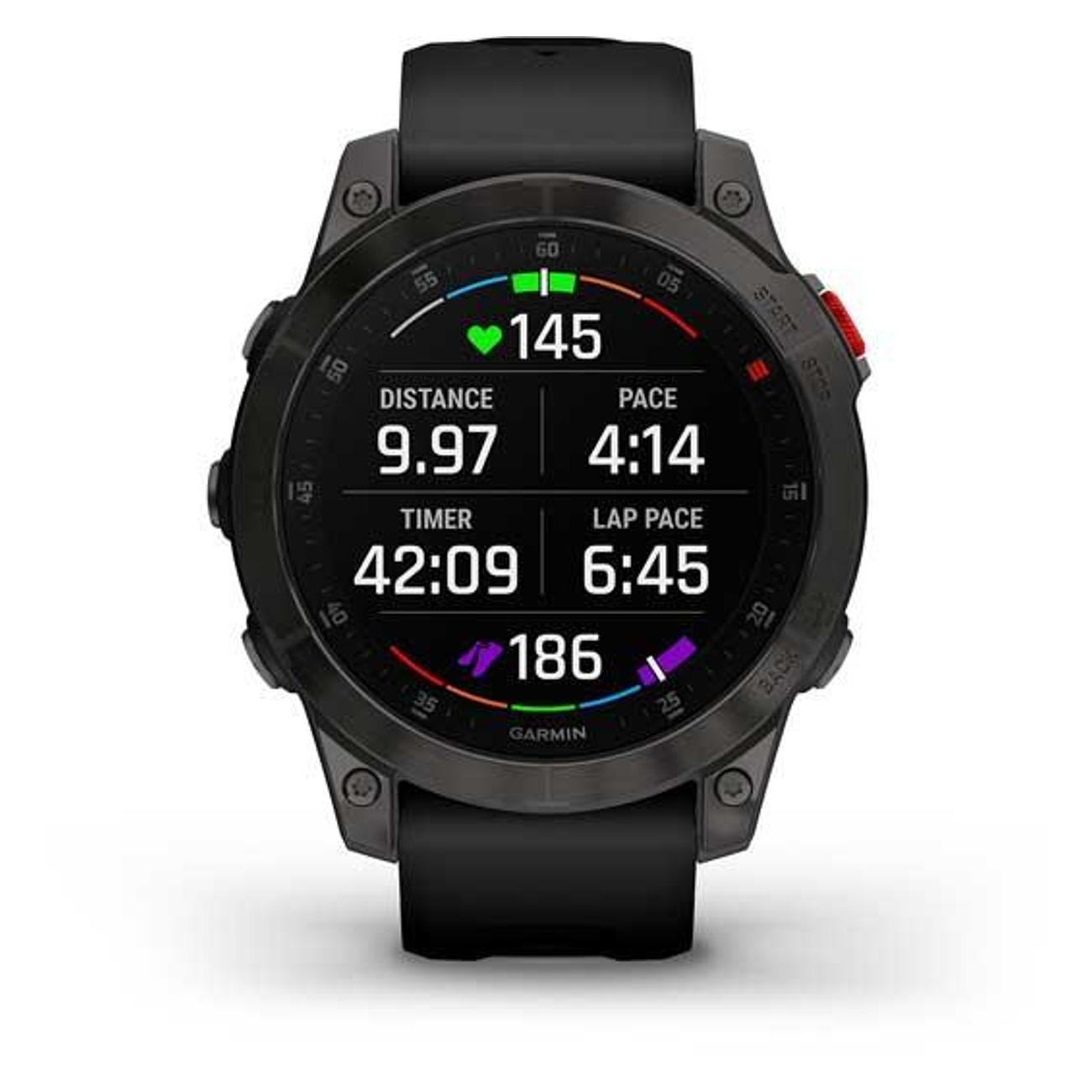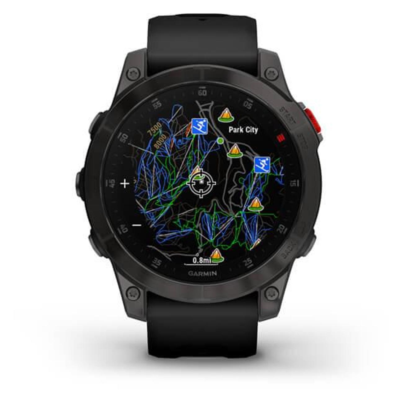 Смарт-часы Garmin Epix (Gen 2) Black Titanium с разрешением сенсорного экрана 426х426 пикс оснащены технологией MIP. Дисплей — цветной, с подсветкой. В работе совместимы с Android 5.0 и выше, iOS 8.0 и выше. Передача данных осуществляется через Bluetooth и Wi-Fi. Устройство регистрирует активности типов бег, велоспорт, плаванье, туризм, фитнес. Корпус — пластиковый ударопрочный водостойкий. Силиконовый ремешок серо-черного цвета обхватом 125-208 мм включен в комплектацию.