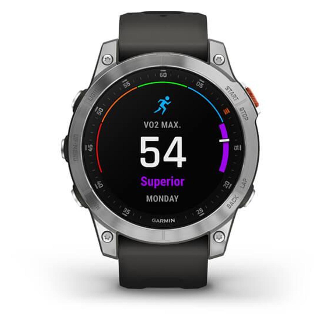 Смарт-часы Garmin Epix (Gen 2) Stainless Steel с разрешением сенсорного экрана 426х426 пикс оснащены технологией MIP. Дисплей — цветной, с подсветкой. В работе совместимы с Android 5.0 и выше, iOS 8.0 и выше. Передача данных осуществляется через Bluetooth и Wi-Fi. Устройство регистрирует активности типов бег, велоспорт, плаванье, туризм, фитнес. Корпус — пластиковый ударопрочный водостойкий. Силиконовый ремешок серого цвета обхватом 125-208 мм включен в комплектацию.