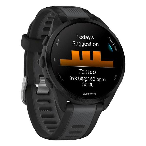 Смарт-часы Garmin Forerunner 165 Black Slate Gray совместимы с операционными системами Android, iOS, PC. Конфигурацией модели предусмотрено наличие сенсорного OLED-дисплей диагональю 1,2" разрешением 390х390 пикселей, дополненного подсветкой.