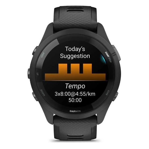Смарт-часы Garmin Forerunner 265 010-02810-00 черного цвета позволяют отслеживать параметры сна, измерять сердцебиение во время пробежки и занятий спортом. Прибор оснащен встроенным виджетом соревнований. Благодаря технологии Garmin Connect можно находить и создавать новые дистанции.