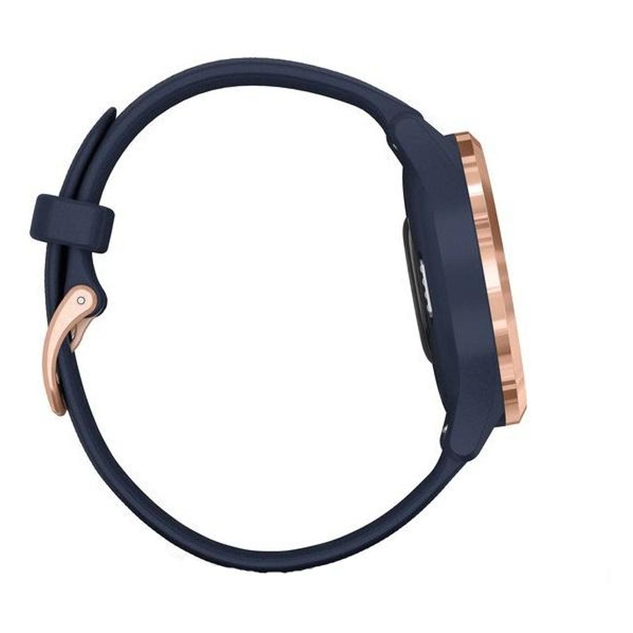 Смарт-часы Garmin Vivomove 3S Gold/Blue работают на базе платформы ОС iOS, Android. При сопряжении со смартфоном могут приходить уведомления об SMS, входящих вызовах, погоде. Модель оснащена скрытым цветным сенсорным дисплеем типа OLED диагональю 0,66 дюйма (1,68 см), который становится заметным только при необходимости.