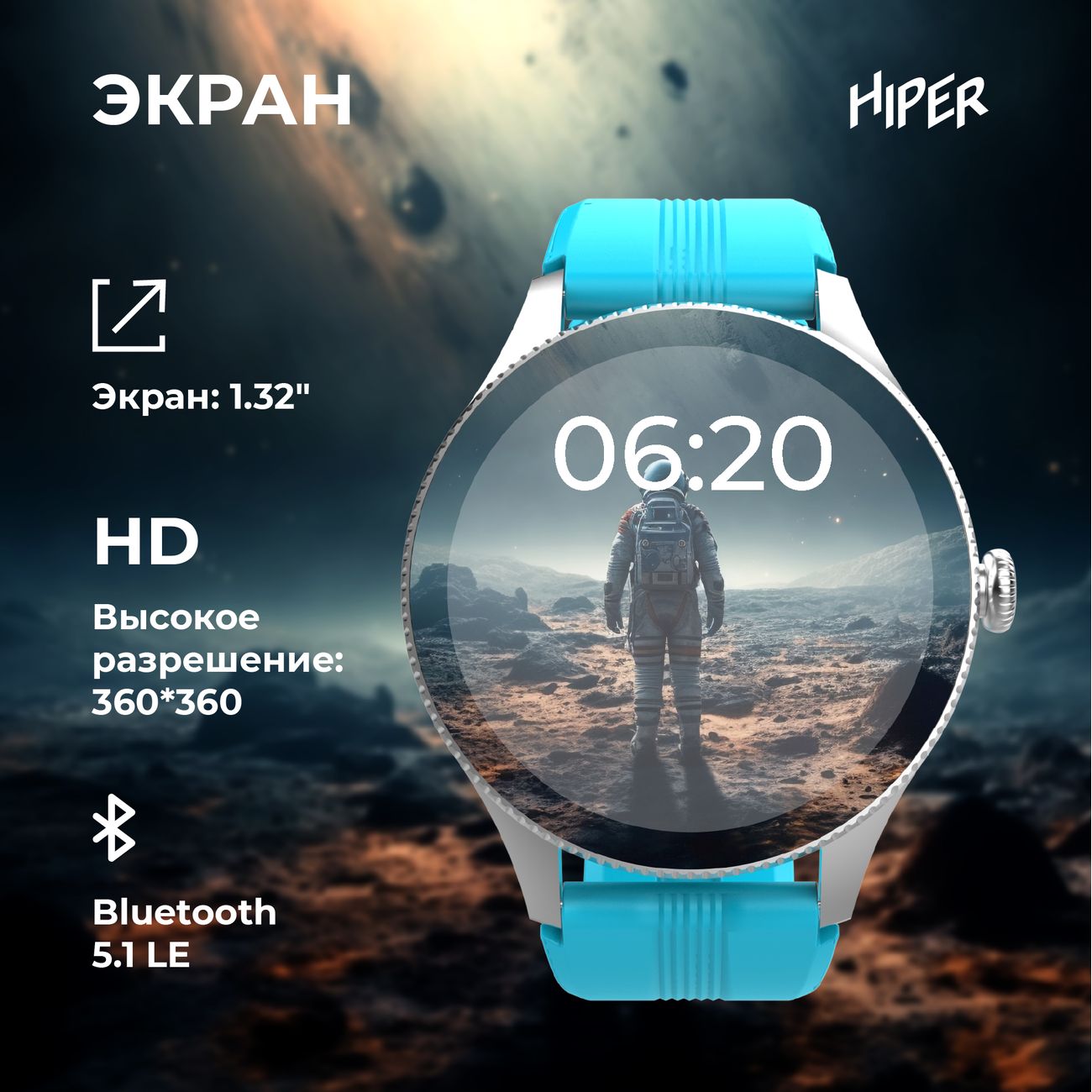 Часы работают на операционной системе Hiper IoT 5.20.1, снабжены оперативной памятью объемом 384 Кб и встроенным хранилищем емкостью 64 Мб. Эта модель принимает SMS с телефона, позволяет отвечать на звонки и совершать их. Устройство снабжено литий-полимерным аккумулятором емкостью 240 мА*ч. Заряжать часы придется не чаще одного раза в 12 дней. Размеры модели — 3,4х6х2,8 см, вес — 50 г.