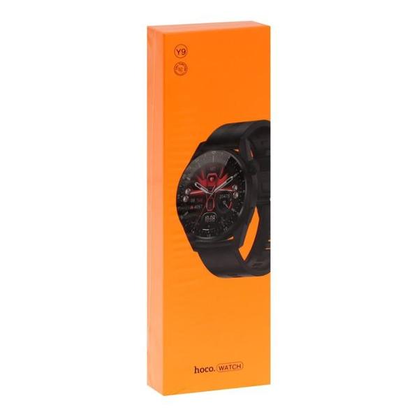 Смарт-часы Hoco Y9 черного цвета идут в комплекте с прочным силиконовым ремешком. Водостойкий корпус сделан из металла с антикоррозийными свойствами. Способ передачи данных — Bluetooth версии 4.0. Габариты модели — 5,8х7,2х9,2 см. Вес — 188 г. Объем оперативной памяти устройства составляет 256 КБ, встроенной — 128 МБ. Часы совместимы с операционной системой Android 5.0 и iOS 10. Оснащены круглым сенсорным экраном с подсветкой (диагональ — 1,37"). Присутствует функция приема звонков, шагомер, пульсометр, термометр. Устройство поддерживает 18 языков.