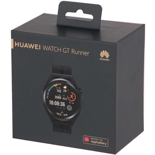 Смарт-часы Huawei GT Runner RUN-B19 черного цвета выполнены в легком корпусе весом 38,5 г. Для крепления на руку используется силиконовый ремешок с обхватом от 140 мм до 210 мм. При необходимости его можно поменять.