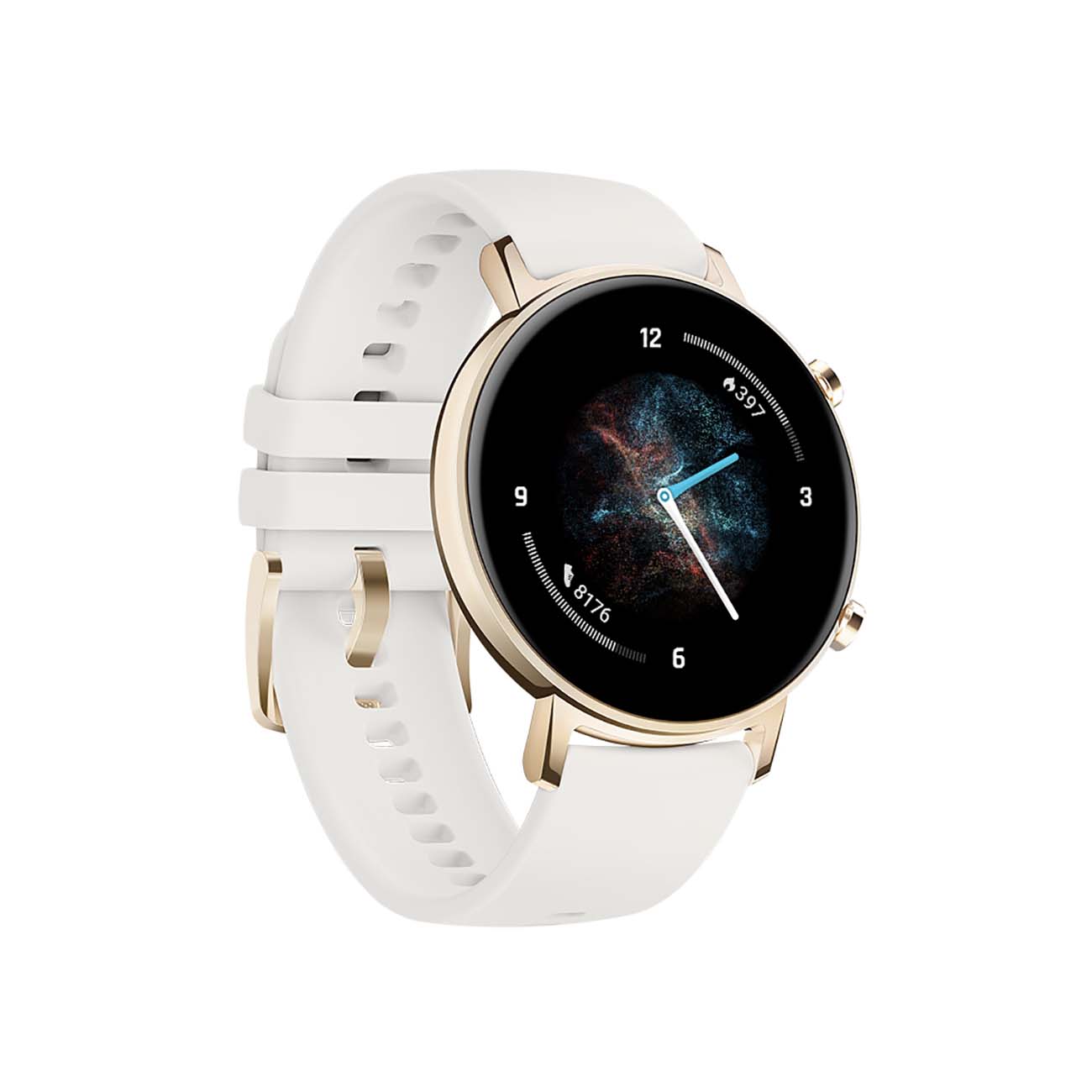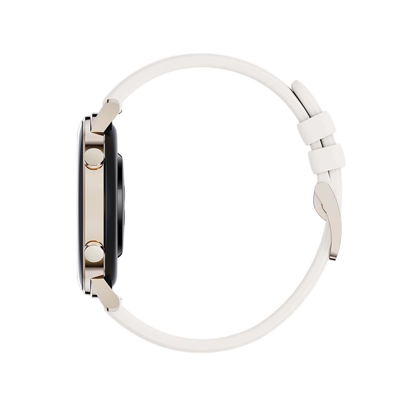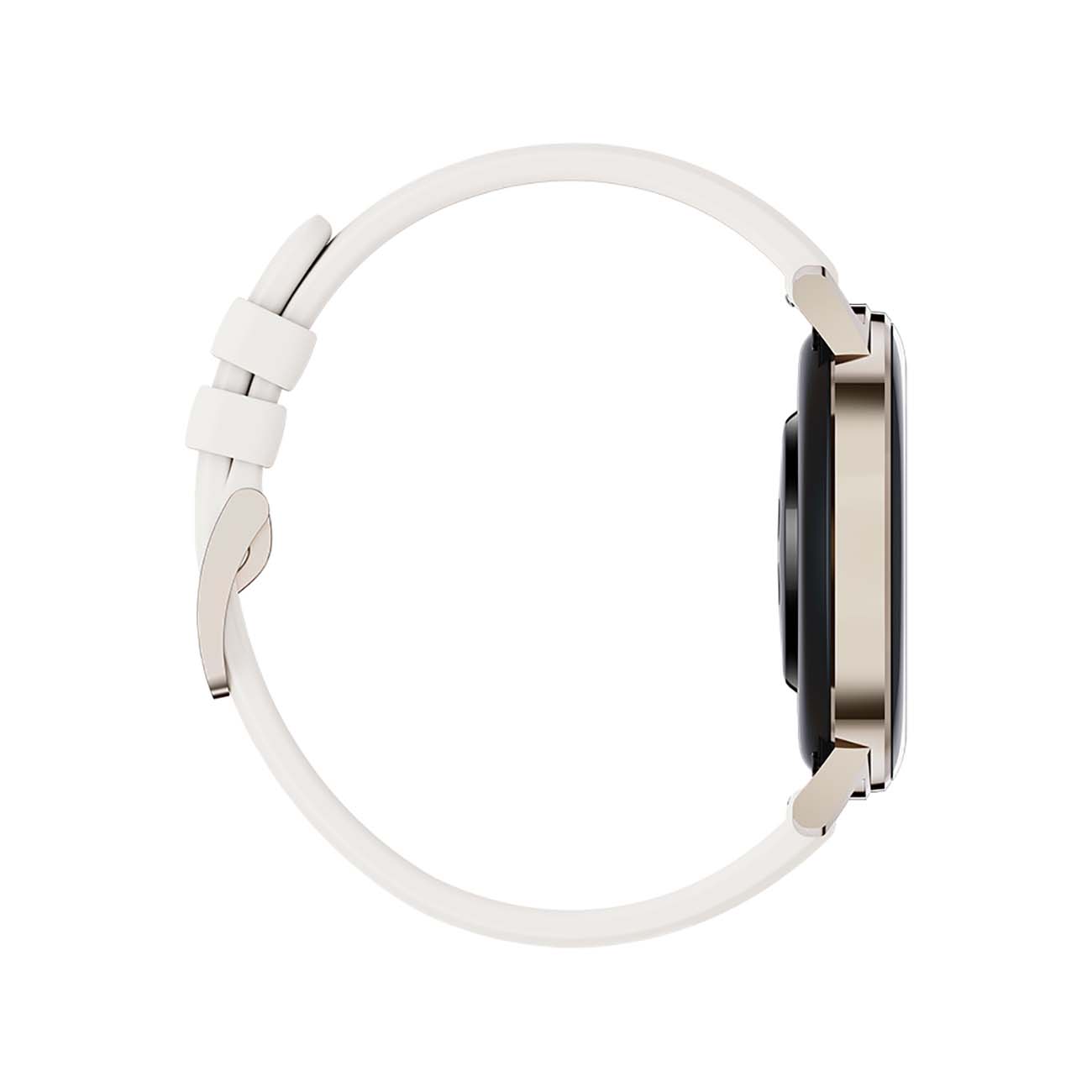 Выглядят стильно. Ремешок скорее светло-серый, чем белый, гладкий, приятный на ощупь силикон или что-то около того. Полагаю, что достаточно маркий. Корпус золотой. Заказала с одноимённого китайского сайта металлические ремешки - подошли идеально.