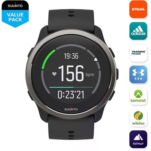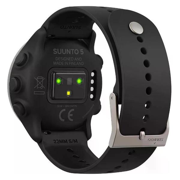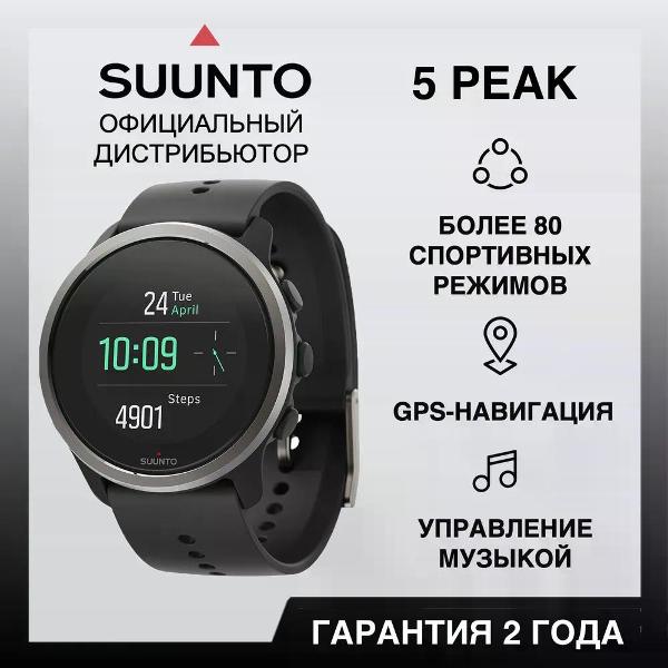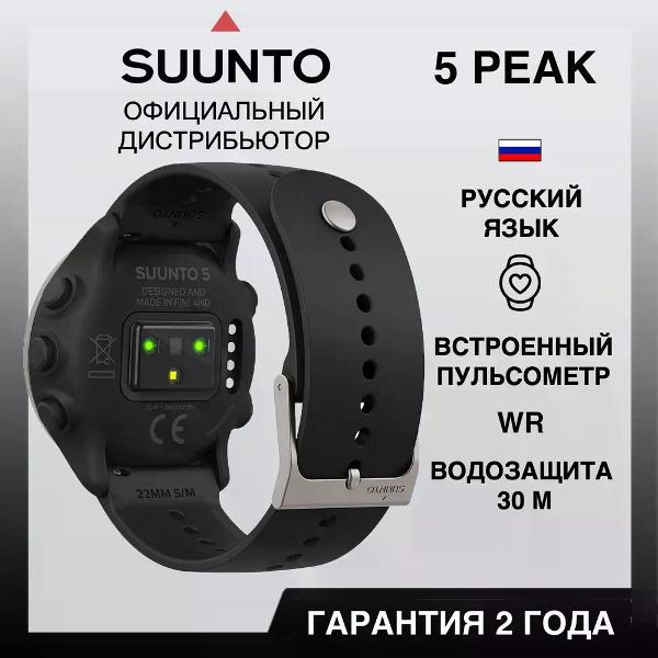 Смарт-часы Suunto 5 Peak SS050726000 с модулем беспроводной связи Bluetooth 5.0 совместимы с мобильными устройствами на операционной системе Android 8.0, iOS 10.0 и выше. Водонепроницаемый (до 3 атм) корпус весом около 39 г выполнен из полимерных материалов и оснащен круглым цветным дисплеем диагональю 1,1 дюйма, окруженным безелем из нержавеющей стали. Технология MIP снижает энергопотребление и обеспечивает хорошую видимость экрана в яркий солнечный день. За управление и настройку отвечают три боковые кнопки. Браслет из силикона шириной 22 мм и обхватом 120-210 мм мягко облегает запястье.