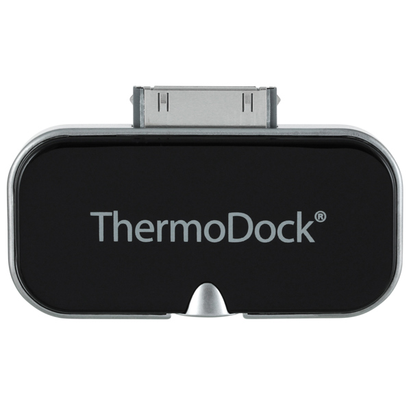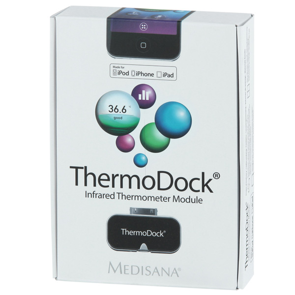«Забудьте о старомодных термометрах. Благодаря инновационному Medisana ThermoDock Вы можете применять собственный iPhone, iPod touch или iPad для измерения температуры. И прежде чем спросите ответим – нет, вставлять Вам ничего вставлять не придётся. Эта умная маленькая штука применяет бесконтактные инфракрасные технологии, измеряя с их помощью температуру тела, комнатную, температуру любой поверхности и даже воды. Просто подключите Medisana ThermoDock к 30-ти пиновому разъёму, и бесплатное приложение VitaDock предоставит точные показания, которые могут быть сохранены, обобщены с другими или отправлены по электронной почте».