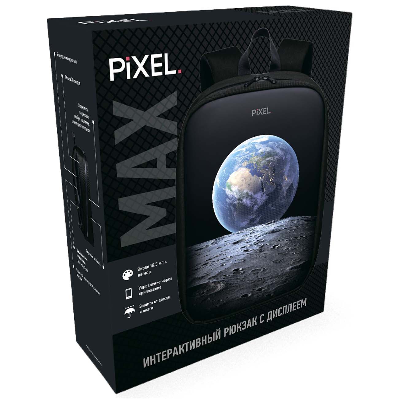 Флагманский рюкзак Pixel Bag Max оснащен ярким светодиодным дисплеем, встроенным во внешнюю часть корпуса. В выключенном состоянии экран незаметен, поскольку полностью интегрирован в ткань. Чтобы устанавливать различные изображения, надписи и анимации достаточно воспользоваться бесплатным приложением на Android/iOS.