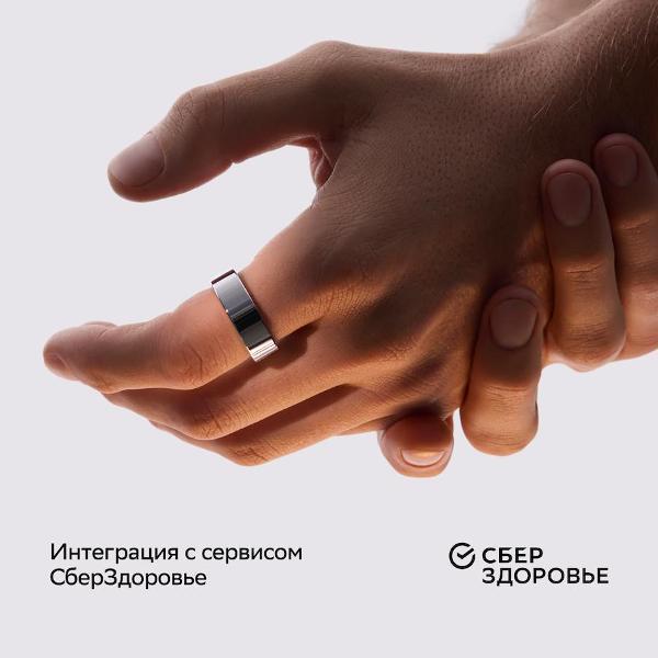 Умное кольцо Sber цвета «матовый черный» соответствует размеру 12". Аксессуар можно использовать с устройствами, на которых установлены операционные системы Android и iOS. Модель весит 3,9 г.