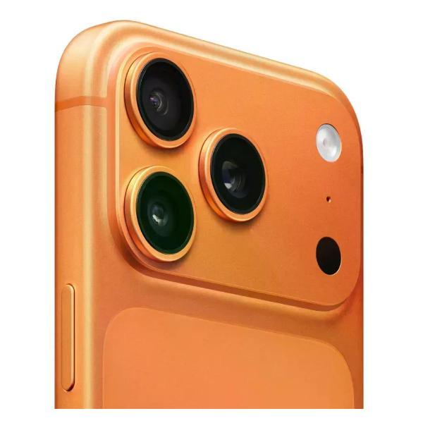 iPhone 17 Pro Мах — флагманская модель, созданная для максимальной мощности и стабильности. В основе конструкции лежит цельнолитой алюминиевый корпус, разработанный для повышения общей производительности, увеличения ёмкости аккумулятора и обеспечения долговечности устройства. Такой подход позволяет объединить высокую прочность с чётко выверенной инженерией. Система камер iPhone выводит мобильную фотографию и видеосъёмку на новый уровень. Устройство оснащено самым большим телеобъективом в истории iPhone с фокусным расстоянием до 200 мм. Этого удалось добиться благодаря тетрапризменной оптической схеме и увеличенному сенсору. В результате пользователю доступен 8-кратный оптический зум и значительно расширенные творческие возможности. Камера демонстрирует высокую эффективность при слабом освещении, позволяет создавать детализированные фотографии и профессиональные видеоматериалы. Фронтальная камера поддерживает гибкое кадрирование: поле зрения можно расширить одним касанием, плавно переходя от портретной ориентации к альбомной. Когда в кадре появляются друзья, система автоматически корректирует угол, чтобы уместить всех участников. iPhone также предлагает широкий набор средств для видеопродакшена. Улучшенная стабилизация, характеристики кинематографического уровня и совместимость с профессиональными стандартами делают устройство универсальным инструментом — от домашних видеороликов до сложных постановочных проектов. Высокая производительность достигается благодаря передовой системе охлаждения. Созданная Apple испарительная камера с лазерной сваркой и цельный алюминиевый корпус эффективно отводят тепло от чипа A19 Pro, поддерживая стабильную работу даже при обработке ресурсоёмкой графики и крупных медиафайлов. Такая конструкция обеспечивает устройству устойчивость под нагрузкой и комфортную температуру при длительном использовании.