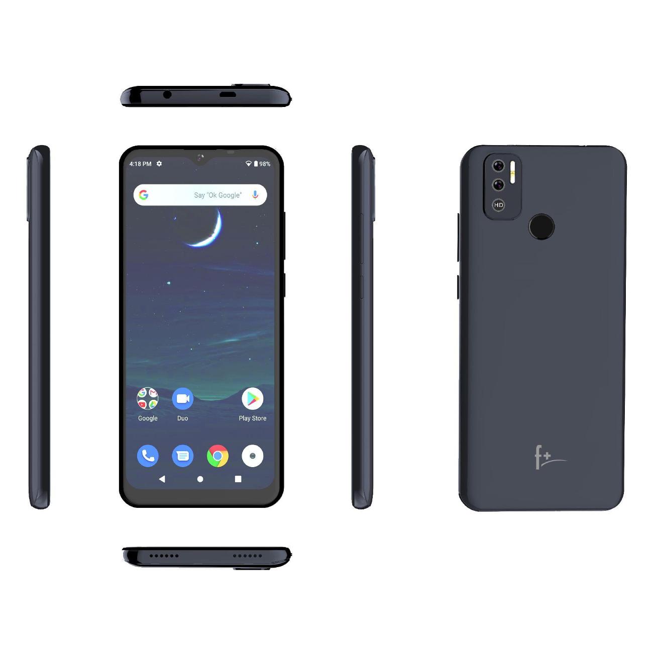 Смартфон F+ SH65 черного цвета оснащен экраном диагональю 6,5 дюйма. Разрешение дисплея — 1600x720 пикселей, основной камеры — 13/0,3 Мп. Закаленное стекло не подвержено образованию царапин. Модель работает на базе операционной системы Android 12. Объем оперативной памяти составляет 2 Гб, встроенной — 32 Гб. Второй параметр может увеличиваться за счет флеш-накопителя на 128 Гб.