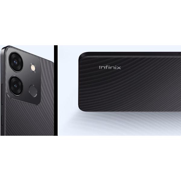 Смартфон Infinix Smart 7 Plus 3/64GB в пластиковом корпусе, окрашенном в черный цвет. Безопасность информации обеспечивает сканер отпечатка пальца, встроенный на тыльной панели. Модель оснащена аккумулятором емкостью 6000 мА*ч и поддерживает карты памяти microSD объемом до 2048 Гб. Диагональ экрана, сделанного по IPS-технологии, составляет 6,6". Разрешение — 720x1612 Пикс.