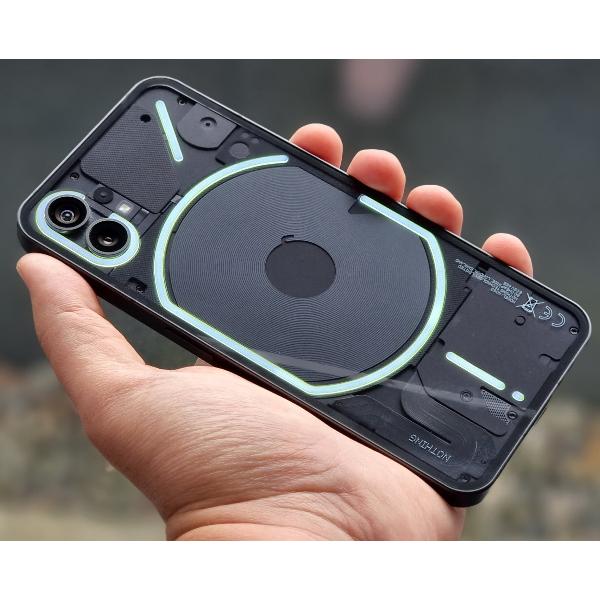 Смартфон Nothing 1 черного цвета снабжен 8 Гб ОЗУ и 256 Гб встроенной памяти. Устройство выполнено в уникальном безрамочном корпусе со стандартом IP53: за прозрачной задней стенкой расположено 900 светодиодных лампочек, который могут создавать разный световой узор в зависимости от мелодии звонка или уведомления. Можно самостоятельно настроить работу подсветки, например, установив комбинацию при звонке определенного абонента.