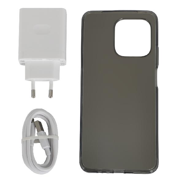 Корпус выполнен из пластика, задняя панель привлекает внимание интересным сочетанием фактур: верхняя часть — глянцевая, нижняя — матовая. Литий-ионный аккумулятор емкостью 5000 мА*ч поддерживает быструю зарядку 33 Вт, ЗУ 11В/3A поставляется в комплекте. Подключение производится через разъем USB-C.