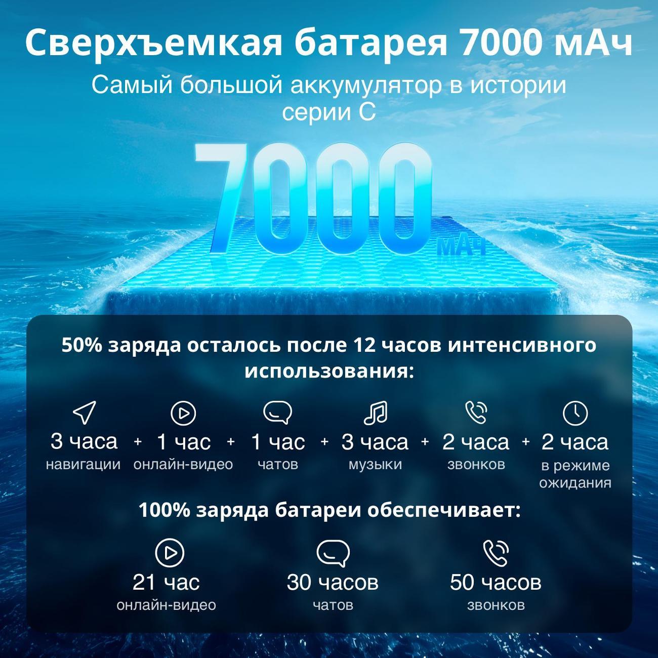 Смартфон Realme C85 4G Blue с 6 Гб оперативной и 128 Гб встроенной памяти ориентирован на длительную автономную работу и плавное отображение контента.
