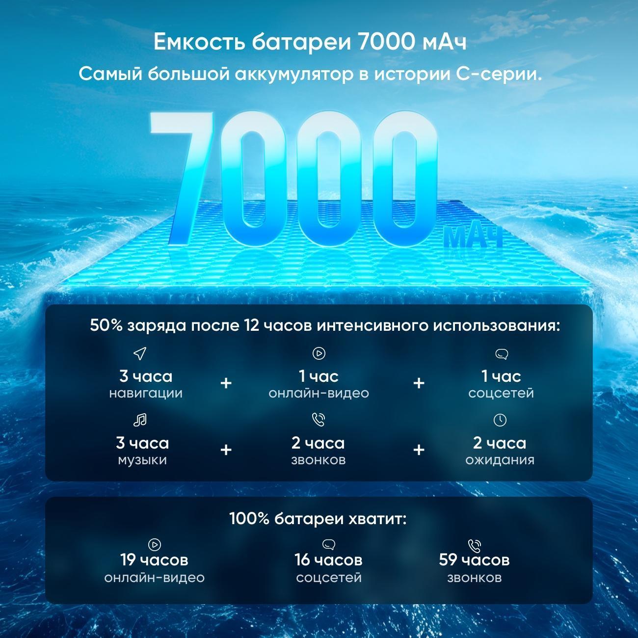 Модель в пластиковом корпусе весом 205 г оснащена основной камерой на 50 Мп с инструментами AI для быстрого редактирования снимков. Безопасность данных обеспечивают сканер отпечатка пальцев и датчик распознавания радужки глаза. Устройство работает на базе Android 15 с обновленным интерфейсом realme UI.