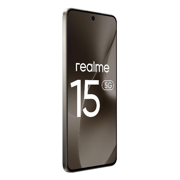 Смартфон realme RMX5106 15, цвет «черный металл» выполнен в ультратонком (7,66 мм) корпусе из пластика, защищенном от пыли и влаги по стандарту IP69. Премиальное матовое покрытие с прохладным ощущением стеклянной поверхности красиво переливается на свету. Дизайнерский акцент — индикаторное кольцо Pulse Light вокруг меньшего объектива камеры. На нижнем торце расположен слот для двух nano-Sim карт, которые поддерживают связь в сетях 2G, 3G, 4G LTE и 5G. Беспроводные технологии Wi-Fi 6, Bluetooth 5.4 и NFC отвечают за стабильное соединение, прием-передачу данных и бесконтактные платежи.