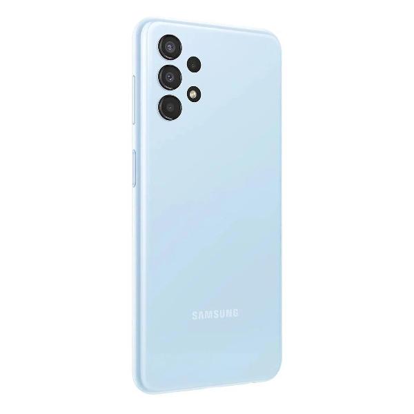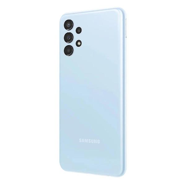 Смартфон Samsung Galaxy A13 голубого цвета с 4 Гб ОЗУ и 128 Гб встроенной памяти выполнен в пластиковом корпусе с каплевидным вырезом под камеру. Смартфон работает на базе ОС Android под управлением восьмиядерного процессора. Экран диагональю 6,6 дюйма с разрешением 2408х1080 пикселей выполнен по технологии PLS (улучшенная версия IPS-матрицы).