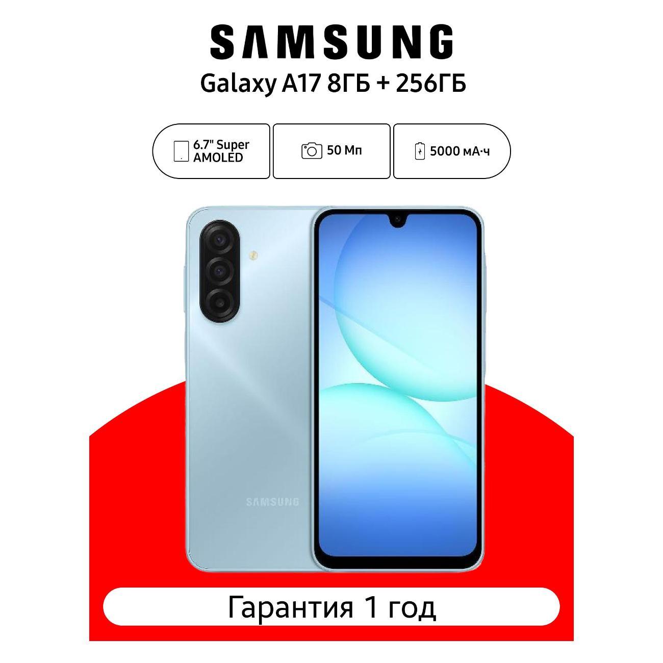 Вы можете купить Смартфон Samsung Galaxy A17 8/256 ГБ, голубой в магазинах М.Видео по доступной цене. Смартфон Samsung Galaxy A17 8/256 ГБ, голубой: подробное описание, фото и отзывы реальных покупателей, характеристики, возможность скачать инструкции и подобрать аксессуары.