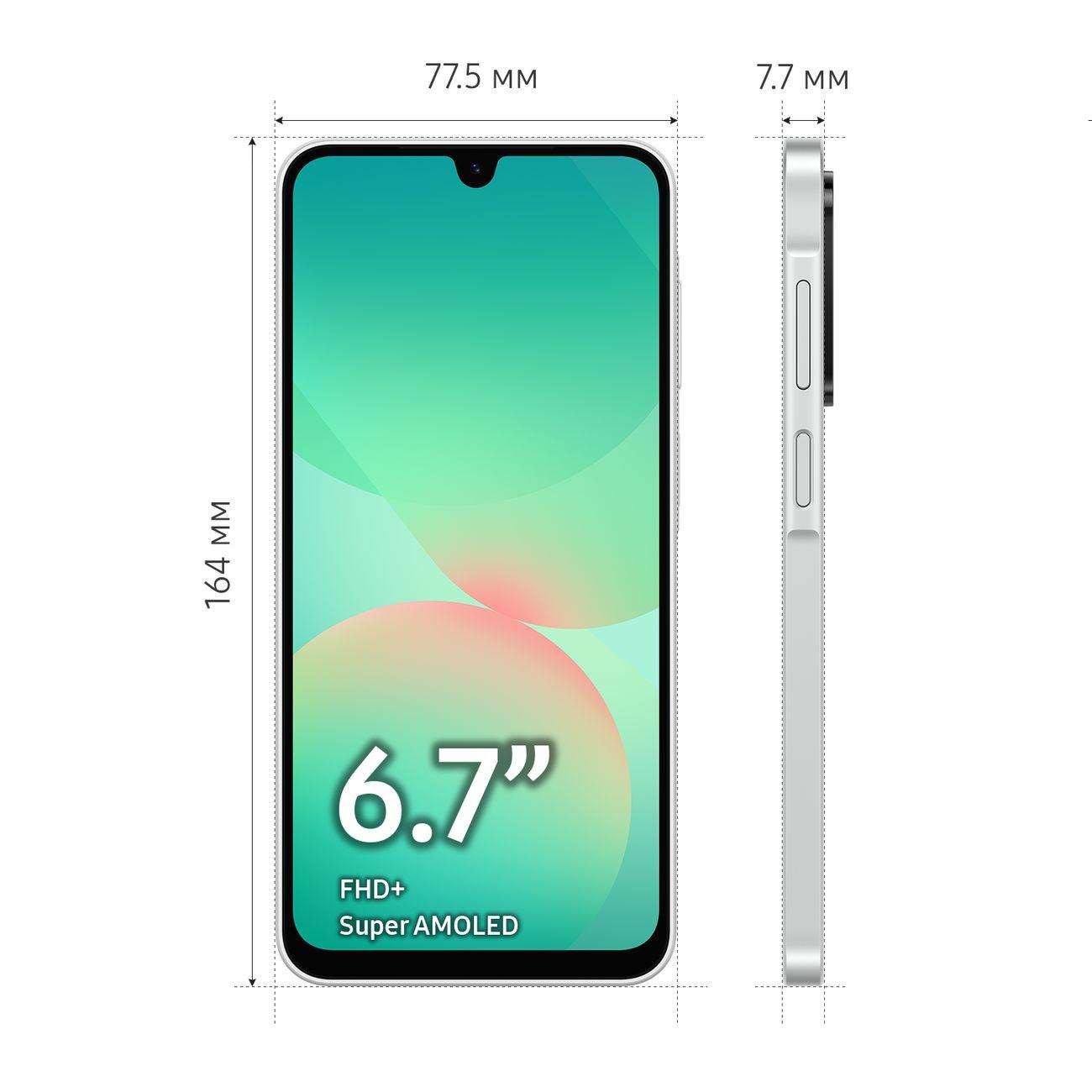 Смартфон Samsung Galaxy A26 5G 6/128GB белый — современный аппарат в тонком элегантном корпусе, сочетающий высокую скорость работы в сетях нового поколения и продвинутые функции искусственного интеллекта.