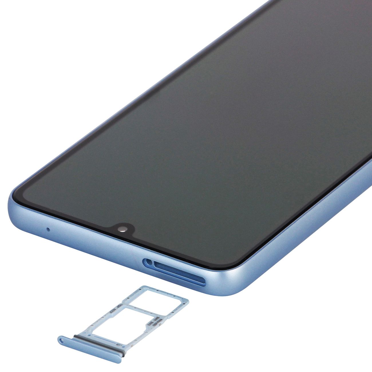 Смартфон Samsung Galaxy A33 в пластиковом корпусе голубого цвета оснащен встроенной памятью объемом 128 Гб. Модель поддерживает работу двух карт Nano-SIM одновременно. В качестве операционной системы используется Android версии 12.