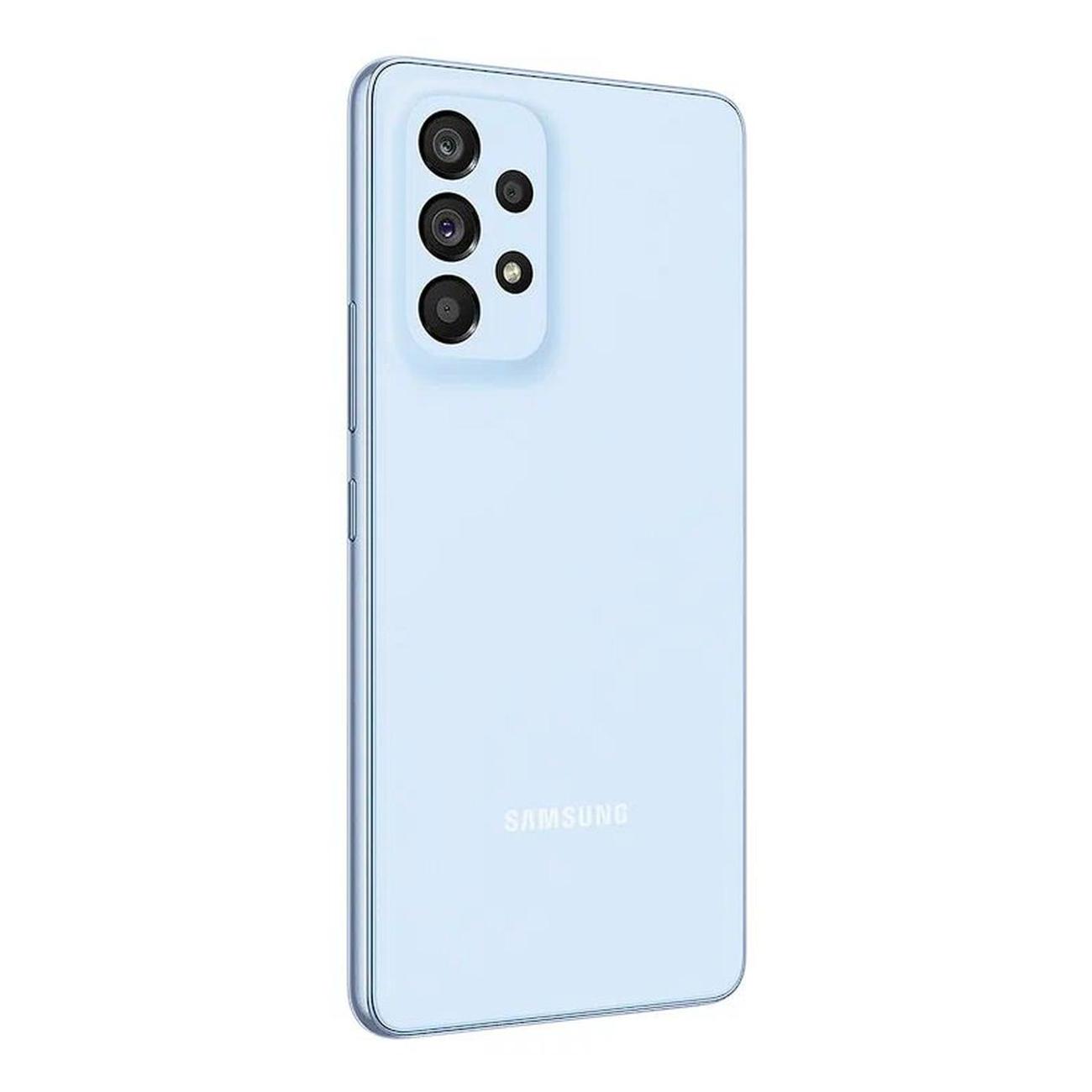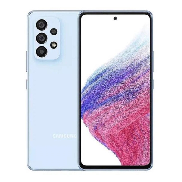 Смартфон Samsung Galaxy A53 5G 8/256Gb Blue оснащен большим сенсорным экраном диагональю 6,5 дюйма c максимальным разрешением 1080x2400 пикселей FHD+. Частота обновления дисплея — 120 Гц. Устройство оборудовано четырьмя основными камерами с оптической стабилизацией на 64, 12, 5 и 5 Мп. Есть широкоугольный объектив.