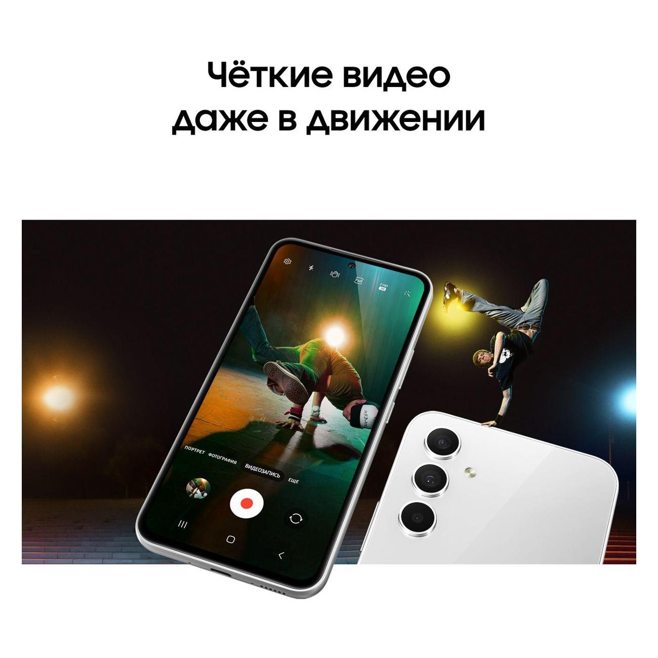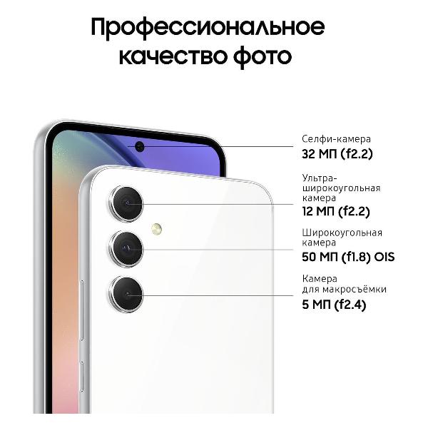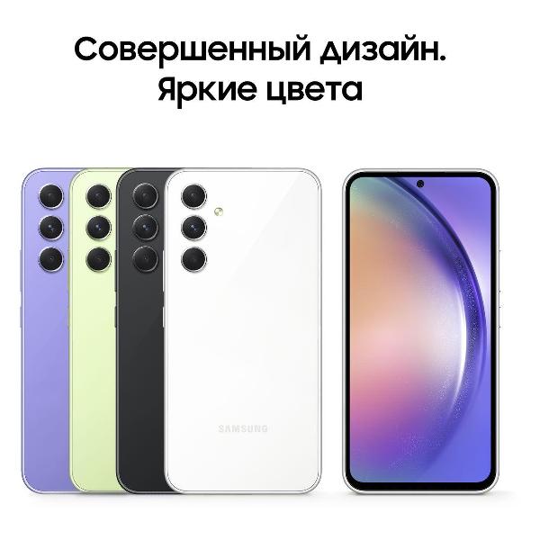 Смартфон Samsung Galaxy A54 5G White обладает большим экраном диагональю 6,4 дюйма разрешением 2340х1080 пикселей, на котором комфортно играть, смотреть фильмы и видеоролики, общаться в социальных сетях, решать рабочие задачи. Технология Super AMOLED обеспечивает высокую яркость и контрастность, даже при ярком солнце картинка будет различима. Частота обновления 120 Гц способствует плавности отображения любого динамичного контента. Экран покрывает прочное стекло Corning Gorilla Glass.