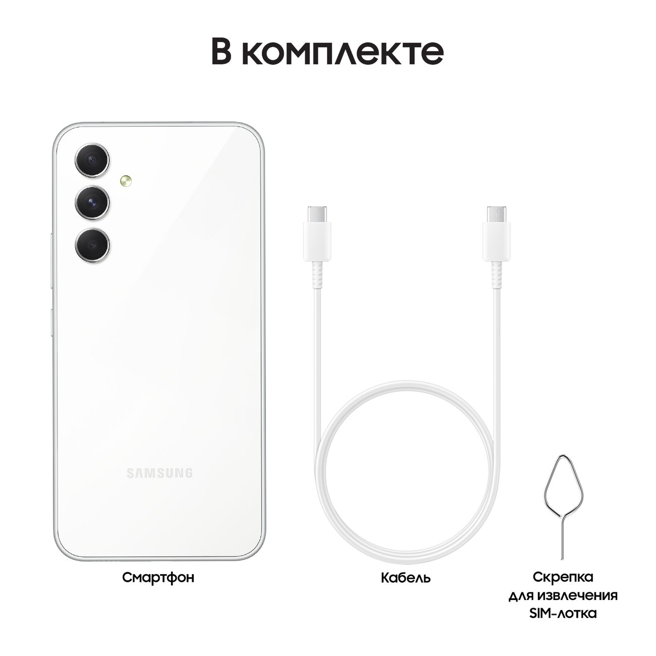 Смартфон Samsung Galaxy A54 White обладает большим экраном диагональю 6,4 дюйма разрешением 2340х1080 пикселей, на котором комфортно играть, смотреть фильмы и видеоролики, общаться в социальных сетях, решать рабочие задачи. Технология Super AMOLED обеспечивает высокую яркость и контрастность, даже при ярком солнце картинка будет различима. Частота обновления 120 Гц способствует плавности отображения любого динамичного контента. Экран покрывает прочное стекло Corning Gorilla Glass.