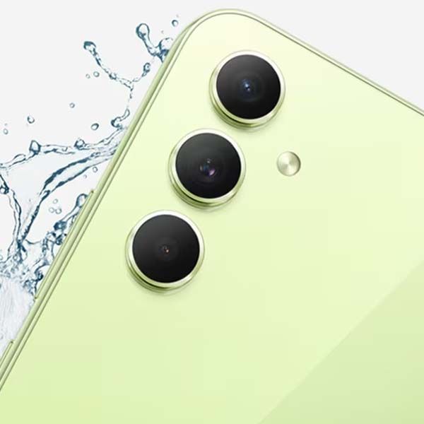 Смартфон Samsung Galaxy A54 6/128 ГБ (лайм) — модель 2023 года. Корпус выполнен из пластика, надежно защищен от пыли и влаги по стандарту IP67. Экран диагональю 6.4" создан по технологии Super AMOLED. Частота обновления составляет 120 Гц. Задняя панель выполнена из премиум-стекла Corning Gorilla Glass 5. Три основные камеры с разрешением 50/12/5 МПикс позволяют снимать высококачественные видео. Фронтальная камера 32 МПикс создает качественные фотографии.