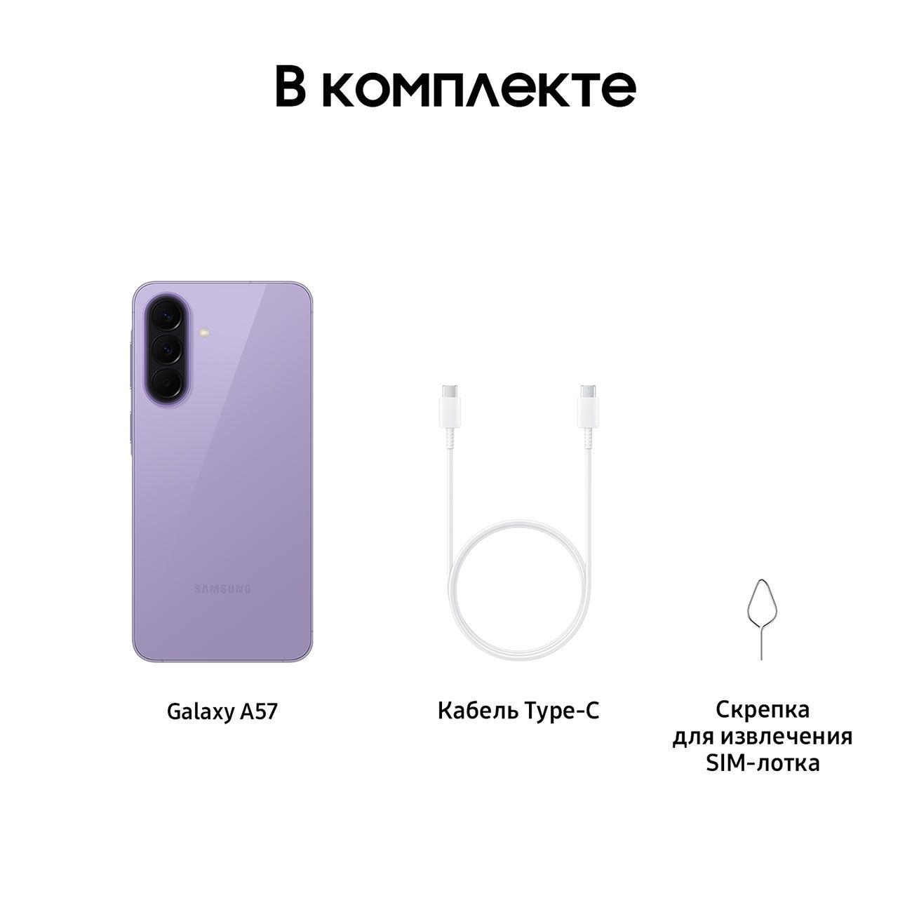 Смартфон Samsung Galaxy A57 12/512GB, лиловый — оптимальный выбор для типовых задач и развлечений. Корпус выполнен по стандарту IP68, что гарантирует работоспособность после погружения в пресную воду на глубину до 1,5 метра в течение 30 минут. Телефоном можно спокойно пользоваться под дождем и брать с собой на пляж — брызги не страшны.