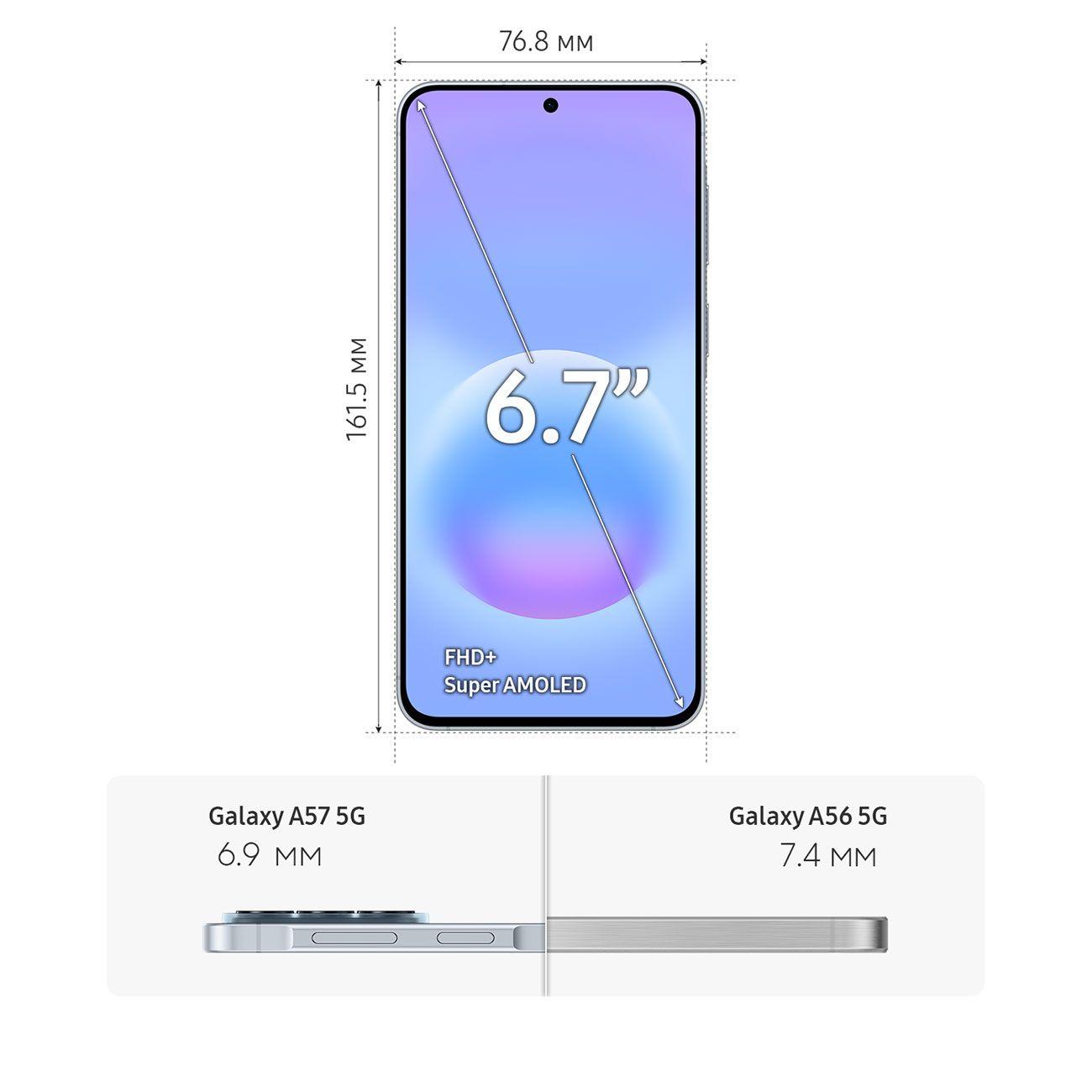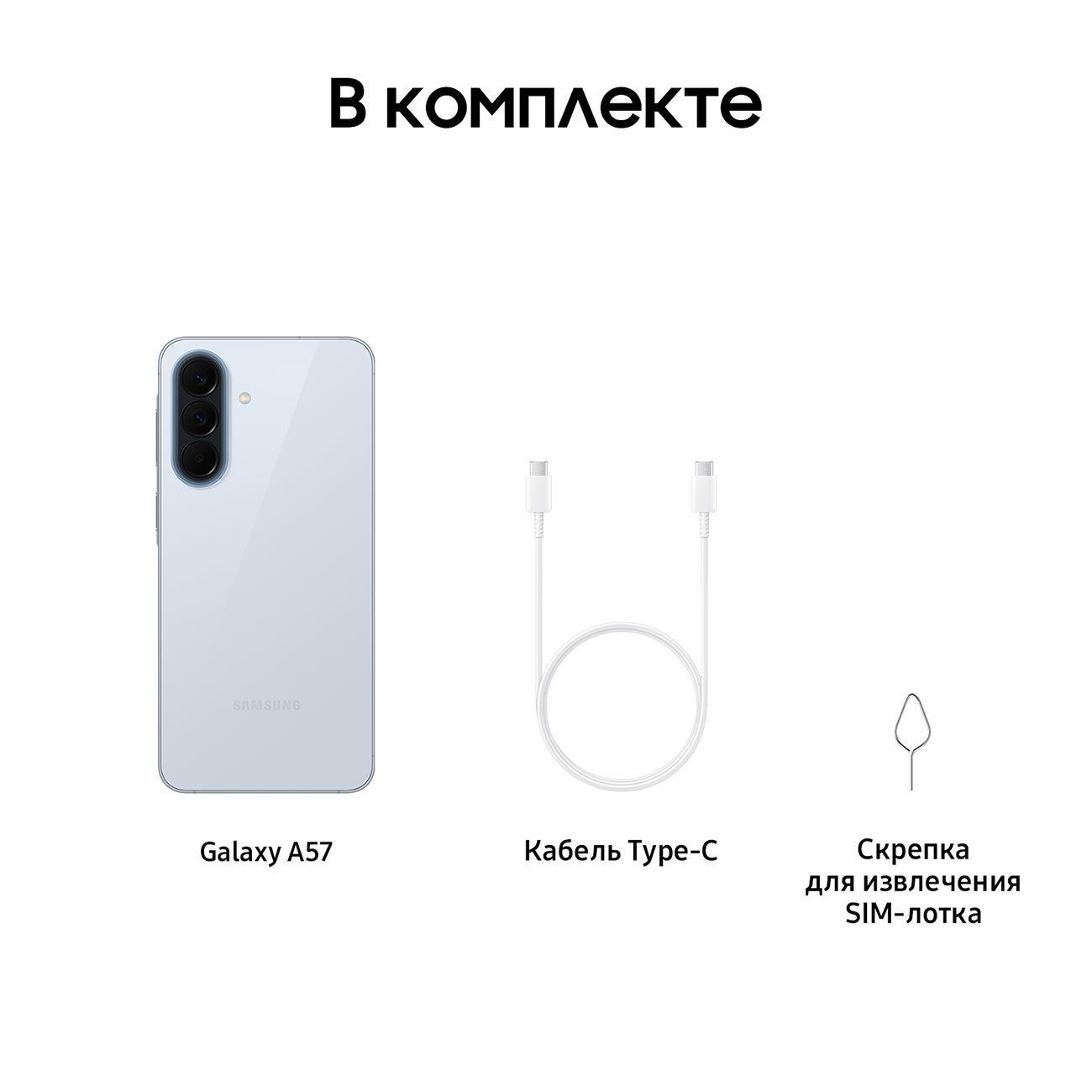 Смартфон Samsung Galaxy A57 8/256GB, голубой — оптимальный выбор для типовых задач и развлечений. Корпус выполнен по стандарту IP68, что гарантирует работоспособность после погружения в пресную воду на глубину до 1,5 метра в течение 30 минут. Телефоном можно спокойно пользоваться под дождем и брать с собой на пляж — брызги не страшны.