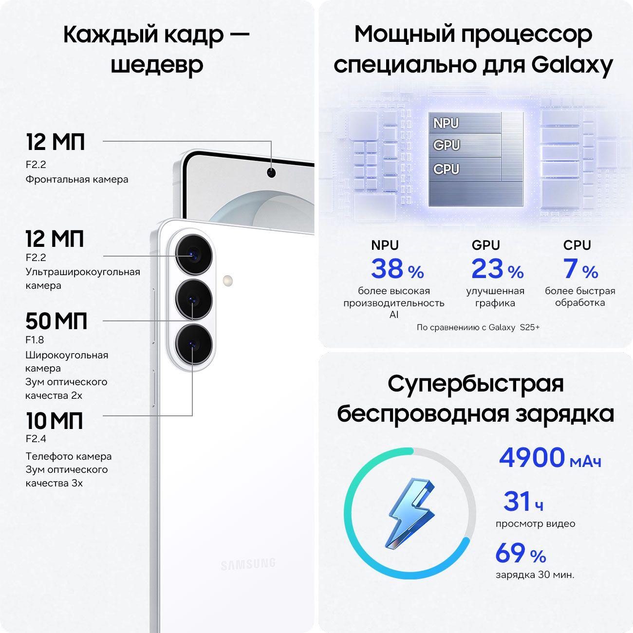 Samsung Galaxy S26+ - это стильный смартфон с интеллектуальными возможностями, созданный для тех, кто хочет больше удобства, скорости и творчества каждый день.
