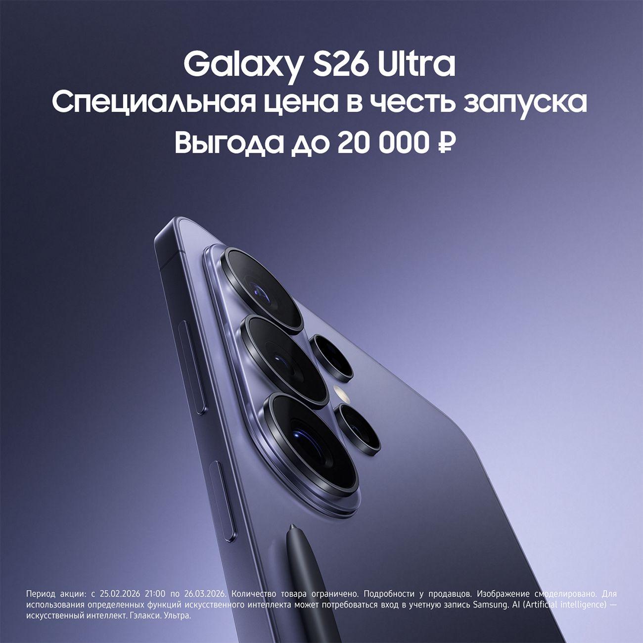 Samsung Galaxy S26 Ultra сочетает премиальный дизайн и передовые технологии, чтобы вы могли снимать на профессиональном уровне, работать быстрее и решать повседневные задачи с помощью Galaxy AI.