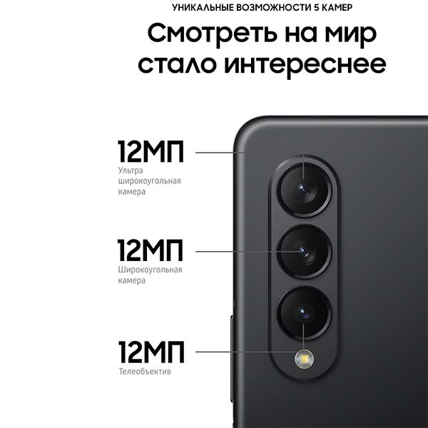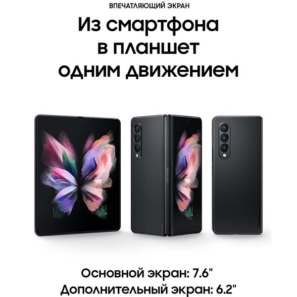 Samsung Galaxy Z Fold 3 – смартфон с экраном 6,2 дюйма, а в раскрытом виде – полноценный планшет. Фиксируйте под любым углом с режимом Flex и получайте максимум наслаждения, просматривая любимый контент или работая.