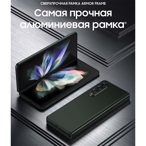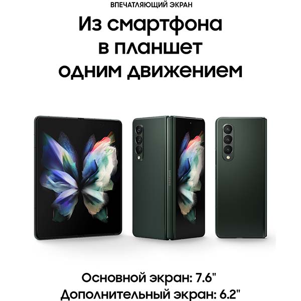 Samsung Galaxy Z Fold 3 – смартфон с экраном 6,2 дюйма, а в раскрытом виде – полноценный планшет. Фиксируйте под любым углом с режимом Flex и получайте максимум наслаждения, просматривая любимый контент или работая.